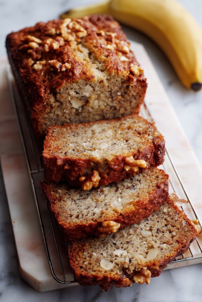 This Mary Berry Banana and Walnut Loaf Recipe is moist enough to eat plain, but it transforms when toasted! A thick spread of Salted Butter melting into the warm crumb is the ultimate comfort food. For a decadent twist, spread a slice with cream cheese or Ricotta and drizzle with honey! A hot Mug of Coffee or a glass of cold milk is the perfect beverage to wash down the sweet, nutty bread.