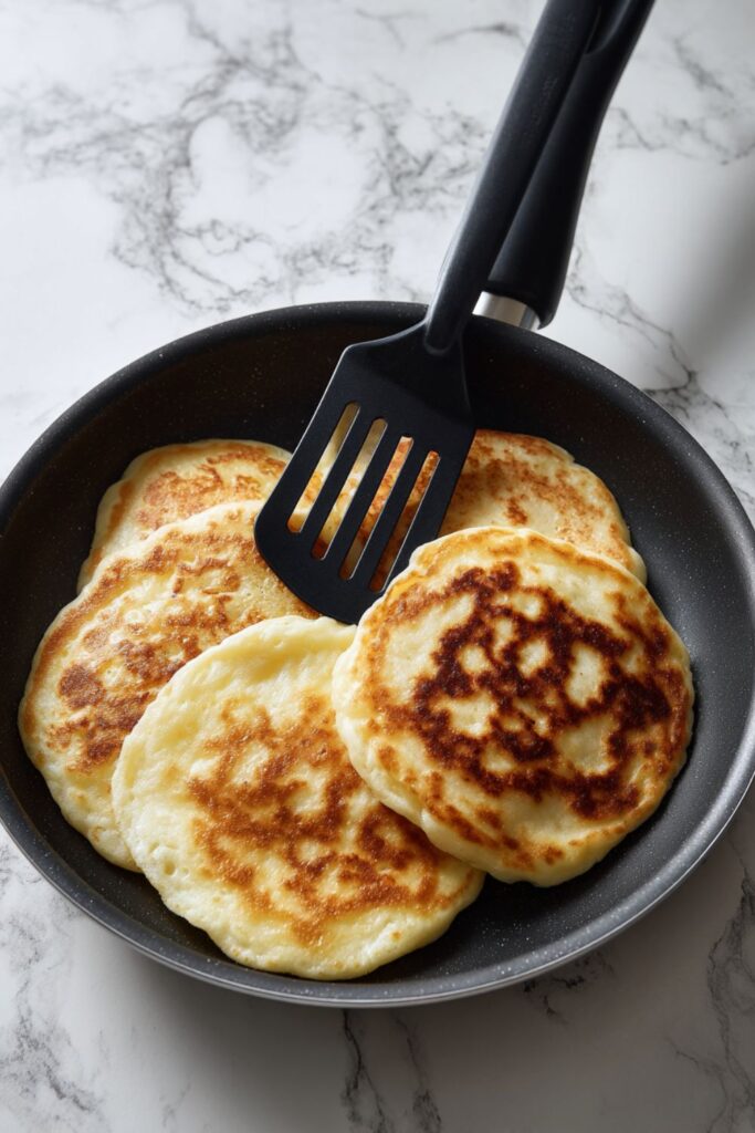 - Flip and finish: Flip the pancakes over. Cook for another 1-2 minutes on the second side until golden brown and risen.