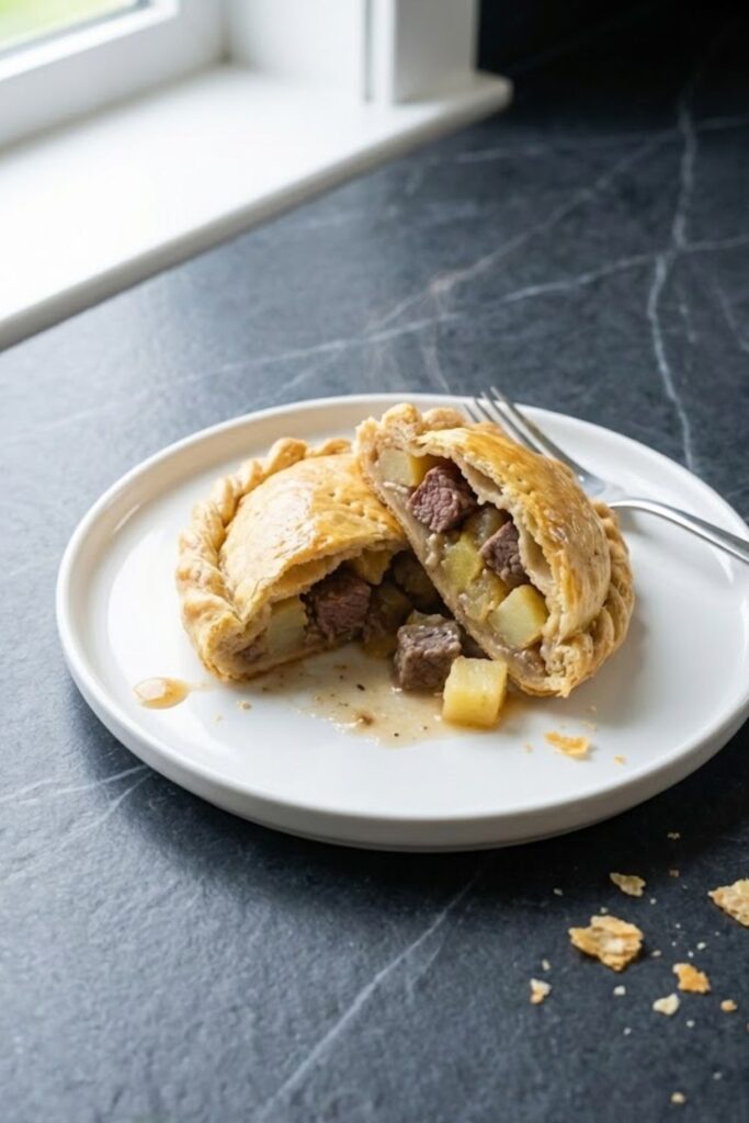 - Rest: Allow the pasties to cool on the tray for 10 minutes before eating. The filling stays extremely hot for a long time.