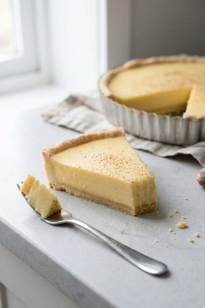 - Bake: Sprinkle the top generously with freshly grated nutmeg. Bake for 30–40 minutes. The tart is ready when it is set around the edges but still has a slight, jelly-like wobble in the center.