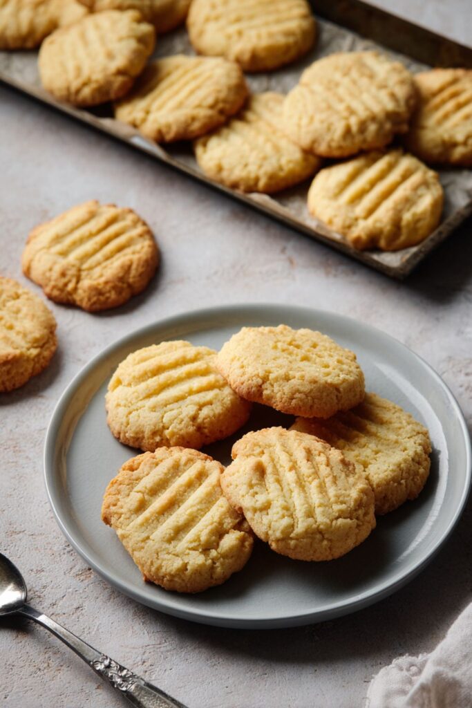 A classic biscuit recipe that produces tender, melt-in-the-mouth cookies with a traditional fork mark.