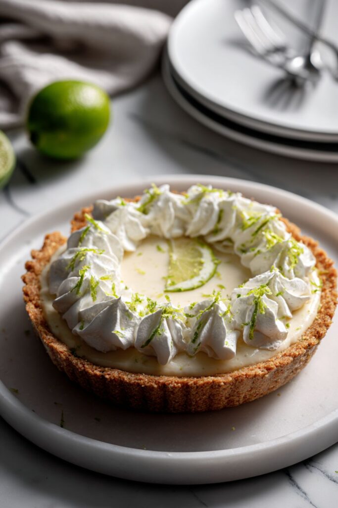 - Decorate and serve: Just before serving, whip the double cream until it holds soft peaks. Pipe swirls of cream around the edge of the pie or spoon it casually over the center. Decorate with extra lime zest or chocolate curls.