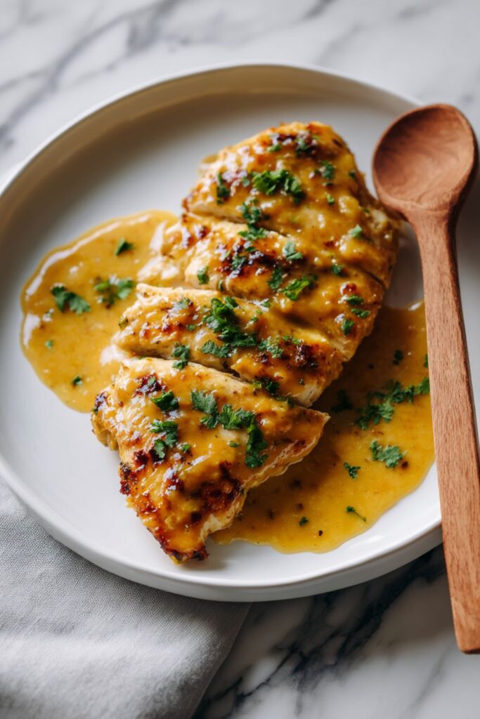Tender chicken breasts simmered in a quick, tangy, and sweet sauce made from mango chutney, lime juice, and mild curry.